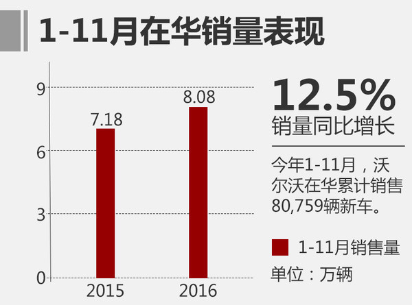 沃尔沃近期公布了11月份的销量数据,中国作为沃尔沃最大单一市场,11月共销售9,076辆新车,同比增长12.8%;1-11月期间,在华累计销量已达80,759辆,接近去年全年表现。就目前的情况来看,沃尔沃今年将创造进入中国以来的历史新高。