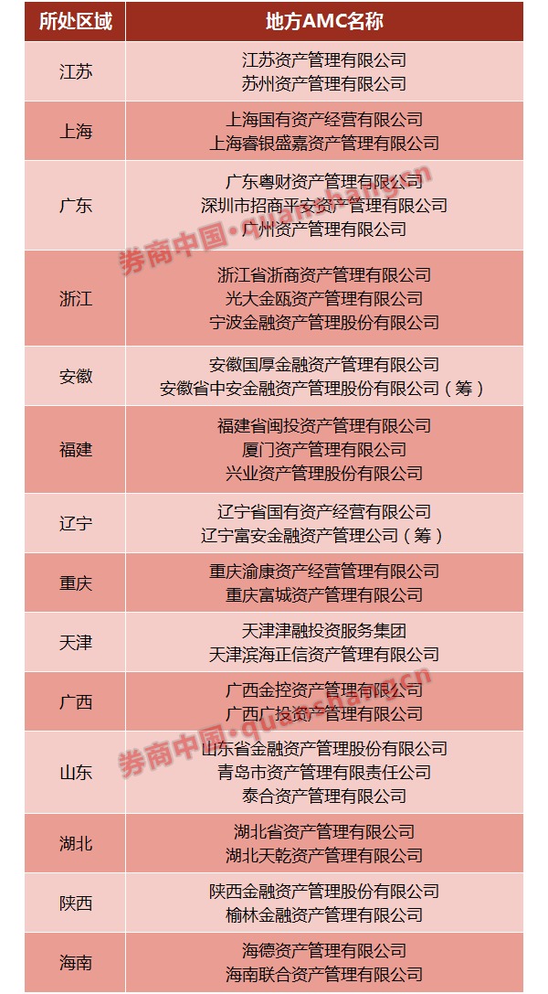 日前,银监会下发关于公布云南、海南等七省市地方AMC名单的通知,云南省资产管理公司等7家地方AMC获批参与本省(区、市)范围内不良资产批量转让工作。