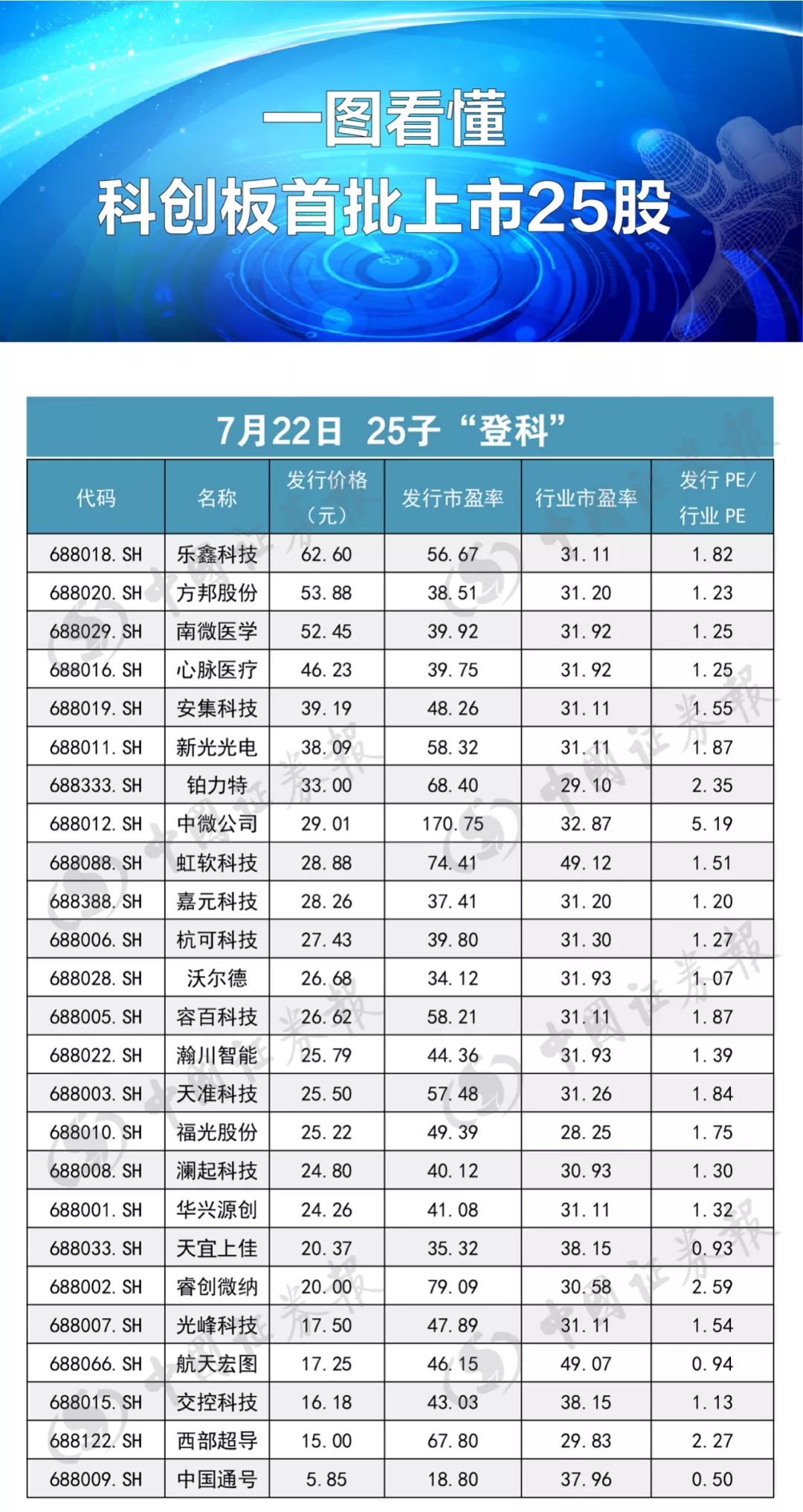 7月22日(下周一),科创板首批25家公司将在上交所鸣锣上市,成为中国资本市场的新生力量。