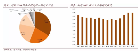 纵观全球,科技创新不仅是国家实力的体现,也是企业生存和发展的基础,而研发投入是科技创新的前提。根据普华永道数据,2018年全球创新1000强上市公司的研发总支出达7820亿美元。通过梳理分析,我们发现以下特征: