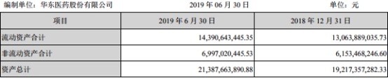 2019年上半年,华东医药资产总计213.88亿元,2018年末为192.17亿元。其中,流动资产合计143.91亿元,非流动资产合计69.97亿元。
