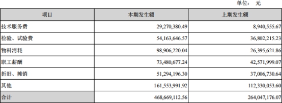 2019年上半年,华东医药研发费用为4.69亿元,上年同期为2.64,同比增长77.49%。其中,技术服务费为2927.04万元,检验、试验费为5416.36万元,物料消耗费用为9890.62万元,职工薪酬费用为7348.07万元,折旧、摊销费用为5129.42万元,其他费用为1.62亿元。