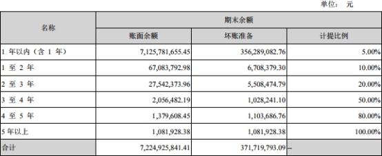 华东医药应收账款中,1年以内(含1年)账面余额为71.26亿元,1至2年账面余额为6708.38万元,2至3年账面余额为2754.24万元,3至4年账面余额为205.64万元,4至5年账面余额为137.96万元,5年以上账面余额为108.19万元。