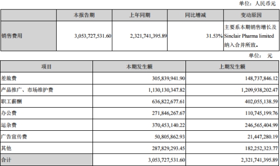 华东医药表示,公司销售费用增长主要系本期销售增长及SinclairPharmalimited纳入合并所致。