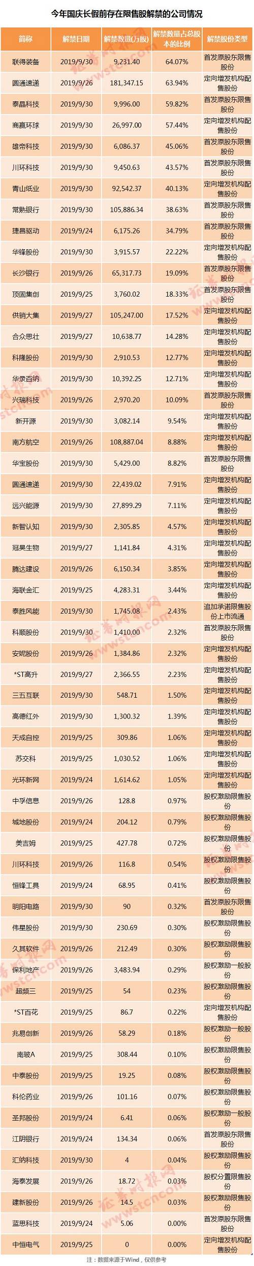 国庆长假前还有55家公司股份将解禁