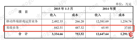 易接业务在营业收入中的占比由2014年的65.95万元,占当期营业收入比重的0.52%激增203倍到2015年的13384.07万元,占当期营业收入比重的64.39%。净利润也由2014年的7476.52万元增长到2015年9652.50万元。