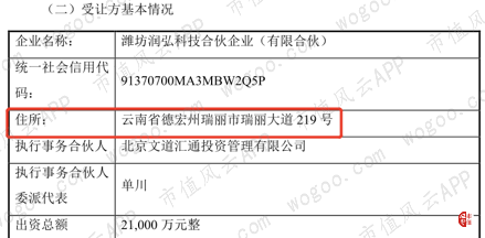 更意外的是,潍坊润弘的办公地点是云南省德宏州瑞丽市瑞丽大道219号,与瑞丽湾的办公地点一模一样,见下方截图: