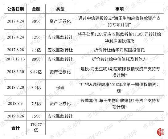2019年8月26日,海王生物发布公告称拟折价转让子公司不超过15亿元的应收账款用于改善公司现金流状态。