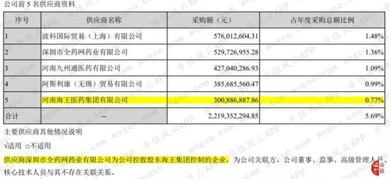 在2018年财报披露的前五大供应商中,深圳市全药网药业有限公司(简称“全药网”)和河南海王医药集团有限公司(简称“河南海王集团”)分别位居第二和第五。