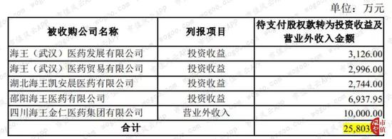 待支付股权款计入公司2018年投资收益或营业外收入,导致海王生物利润总额增加2.58亿元。