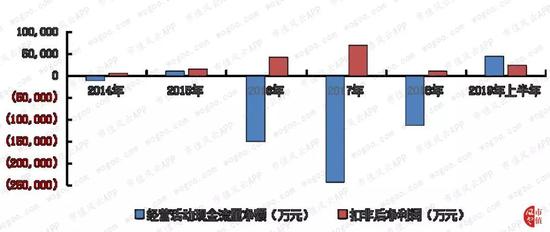 债务高企的一个后果是不断激增的财务费用,2018年度财务费用为9亿元,2019年仅上半年财务费用就高达4.82亿元。相比2018年少得可怜的扣非后净利润0.89亿元,财务费用蚕食利润的场景立现。