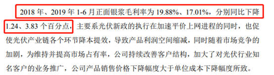 2018年至今,在正银市场竞争持续加剧的同时,光伏新政促使整个光伏产业链面临降价压力,公司产品利润空间下降,毛利率加速下滑。