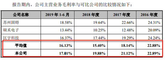 根据申报稿,公司营收影响着公司的毛利及毛利率。数据显示期内公司综合毛利率持续下滑,至2019上半年降至约17.01%,较2016年减少5.88个百分点。