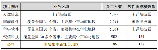 除了收入,业务覆盖也逊色很多,别人覆盖全国,而卓易信息主要集中在江苏地区。