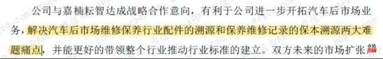 对于合作内容,上市公司也是描述的有模有样:将区块链技术用于解决汽车后市场维修保养行业配件的溯源和保养维修记录的保本溯源难题。