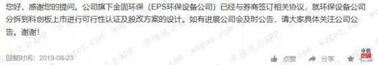 进入2019年,上市公司先是在互动易平台中,提及旗下EPS环保设备属于高端装备制造和节能环保企业,如符合科创板标准,将积极推进相关标的登陆科创板。