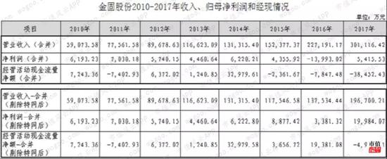 金固股份的扣非归母净利润已连续亏损了三年;2016-2018年,其扣非归母净利润分别为-1.60亿元、-0.33亿元、-1.41亿元。