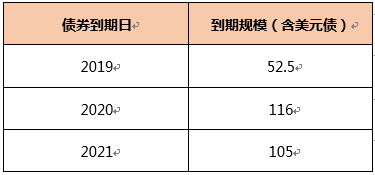 根据公司半年报数据显示,账面资金为373.87亿元,尽管足够覆盖251.07亿元一年内到期的债务,但公司高达772.64亿元总债务中的271亿元的应付债券即将迎来偿付高峰。2019年下半年,包括国内债券、美元债在内到期规模达到约52.5亿元,2020年达到约116亿元。
