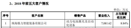 招股书披露,2017年4月格力智能与海目星签约,约定采购后者7条电芯装配线,合同金额合计15890万元。