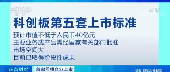 科创板第五套上市标准为“预计市值不低于人民币40亿元,主要业务或产品需经国家有关部门批准,市场空间大,目前已取得阶段性成果。”