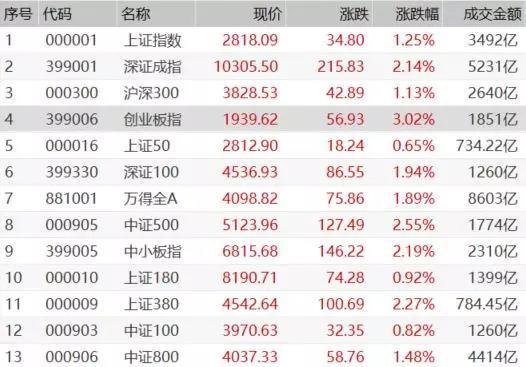 截至收盘,沪指大涨1.25%,稳稳站上2800点;创业板指再大涨3.02%,两天收复跳空缺口。