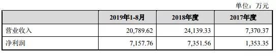 在业绩方面,从2017年、2018年到2019年1月-8月,欧立通分别实现营业收入7370万元、2.41亿元、2.08亿元;实现净利润1353万元、7351万元、7157万元。其中,2018年净利润同比增速达443%。