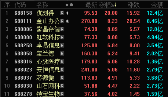3月3日,A股市场上演“冲高回落”的走势,沪指盘中一度站上3000点大关。科创板方面,个股早盘集体走强,继续呈现普涨格局,截至收盘,78只个股飘红,仅有13只个股收跌。涨幅方面,受益于云计算板块的强势表现,科创个股优刻得涨停,收涨20%;此外,金山办公、紫晶存储、虹软科技、卓易信息等8只个股涨幅逾5%。跌幅方面,科创板个股表现相对抗跌,仅有方科技跌幅超3%,乐鑫科技、石头科技、联瑞新材等多股现不同程度下跌。