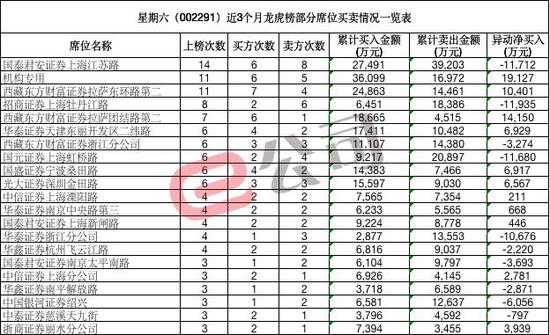 国泰君安上海江苏路、银河证券绍兴、国盛证券宁波桑田路等也都是龙虎榜上的常客。统计显示,近三个月,西藏东财拉萨团结路第二在龙虎榜上的成交额高达259亿元,西藏东财拉萨东环路第二219亿元,银河证券绍兴101亿元,国泰君安上海江苏路88亿元,国盛证券宁波桑田路64亿元,中信证券上海牡丹江路56亿元。