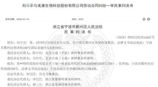 新浪财经讯 近日,裁判文书网公布一则美康生物与公司原“销售总监”之间的劳动合同纠纷。该名“销售总监”向公司索要经济补偿及股权激励费用共计1600余万元。但因为双方之间劳动合同的签订中途出现主体变更,致使法院驳回了该名“销售总监”的全部诉讼请求。