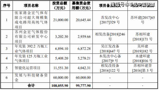 据招股书中曾披露,金宏气体IPO拟公开发行不超过 12,108.34万股,募集资金99,777.90万元,拟投资于“张家港金宏气体有限公司超大规模集成电路用高纯气体项目”、“苏州金宏气体股份有限公司研发中心项目”、“年充装 392.2万瓶工业气体项目”、“年充装125万瓶工业气体项目”、“智能化运营项目”和“发展与科技储备资金”六个项目。其中,将6亿元用于“发展与科技储备资金”的具体用途,公司并没有具体说明。