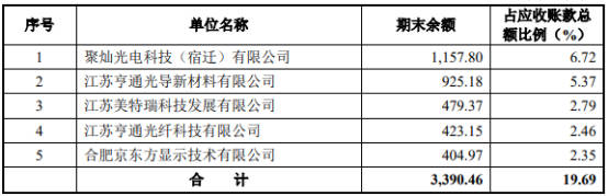 其中,截至2019年6月30日,金宏气体应收账款前五名分别为聚灿光电(12.350, -0.46, -3.59%)、亨通光导、美特瑞科、亨通光纤、合肥京东方。金宏气体表示,如果相关客户经营状况发生重大不利变化,应收账款存在不能及时收回的风险。