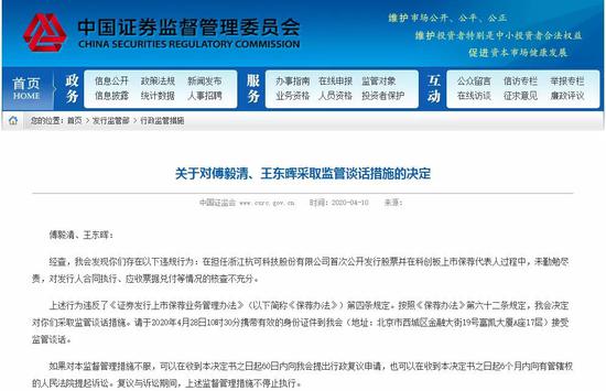 目前,中国证监会官方网站的发行监管部行政监管措施栏目,前6条都被两家科创板企业及其签字保荐代表人和注册会计师包揽。...
