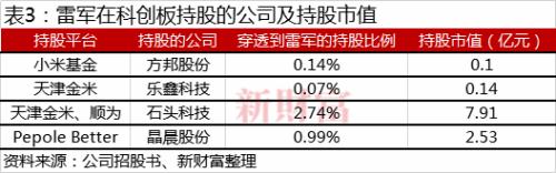 除了金山办公外,雷军还依托小米生态链,投资了石头科技、晶晨股份、乐鑫科技、方邦股份等科创板公司,延续了一贯的“内生+投资”的产业投资方式(表3)。