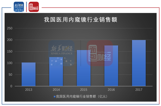 海泰新光的业绩增长一定程度上受益于我国内窥镜在医疗应用市场的发展。根据 FROST&SULLIVAN分析报告,2013至2017年,我国医用内窥镜行业销售额由102亿元增长至199亿元,年复合增长率均达到18.23%。报告预计,未来5年,内窥镜行业有望持续保持9.25%的高速增长,市场规模将于2022年达到320亿元。