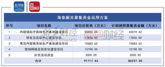 海泰新光本次计划发行不超过2178万股,拟募集资金8.62亿元用于内窥镜医疗器械生产基地建设项目、研发及实验中心建设项目、青岛内窥镜系统生产基地建设项目等。