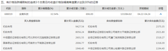 4月24日,交易所披露了安集科技连续3日榜单,同样有3家机构席位位居买入前五,合计买入金额达1.94亿元。
