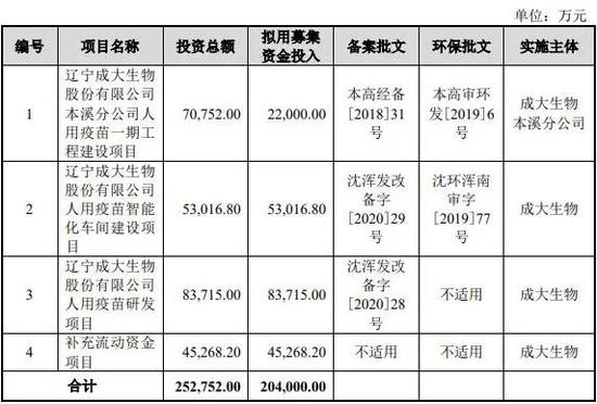 本次成大生物选择第一套上市标准,公司拟募资20.4亿元,投向辽宁成大生物股份有限公司本溪分公司人用疫苗一期工程建设项目、人用疫苗智能化车间建设项目、人用疫苗研发项目以及补充流动资金。