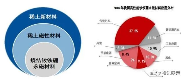 公开资料显示,2018年我国高性能钕铁硼永磁材料应用最大的领域为汽车工业,其收入占比为37.5%,其次分别为新能源汽车(11.8%)、工业应用(10.9%)、风电(10%)行业。