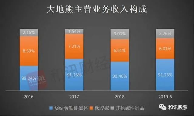 公司主要产品为“大地熊”牌烧结钕铁硼永磁材料,报告期内,占主营收入比分别为89.24%、91.25%、90.40%、91.23%,为公司主要收入来源。且营收集中于汽车工业和工业电机两大领域,合计占比超65%。