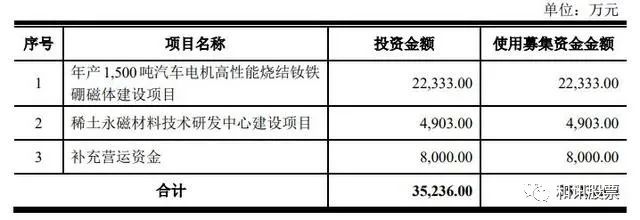据悉,大地熊本次募集资金投资项目总额为 3.52亿元。将用于年产1500吨汽车电机高性能烧结钕铁硼磁体建设项目、稀土永磁材料技术研发中心建设项目的建设以及补充流动资金需要。