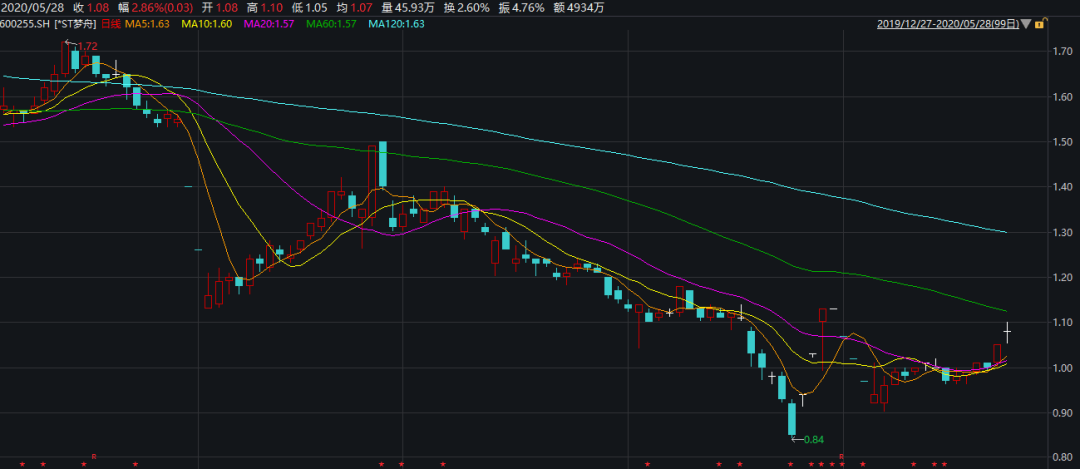 得益于此,4月27-28日,*ST梦舟股价连收两个涨停板,股价重新站回1元上方,虽暂时解除了面值退市的“警报”,但始终徘徊于“1元区”。