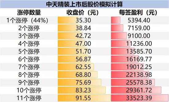 与此同时,今年来在中小板上市表现较好的新股最高能录得11-12个涨停,如果市场形势向好,达到11个涨停,中一签中天精装盈利会超过3.35万元。