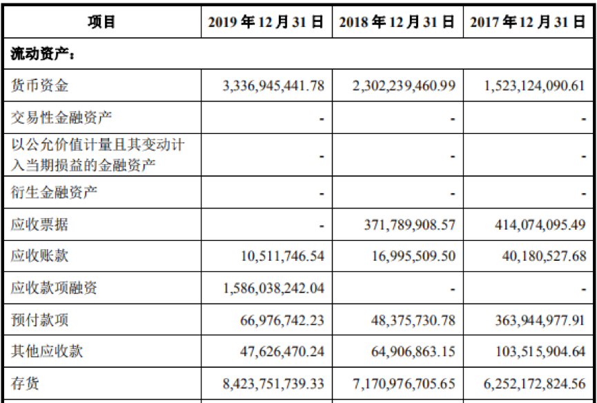据招股书显示,2017年—2019年,郎酒股份的存货分别62.52亿元、71.71亿元和84.24亿元,而同期营收分别为51.16亿元、74.79亿元和83.48亿元。