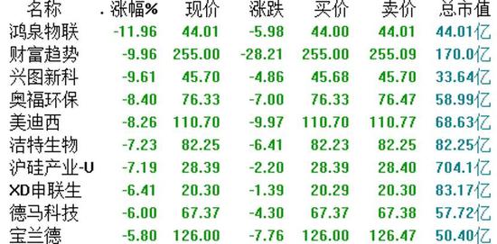 6月11日周四,两市总体呈现冲高回落的态势。截至收盘,沪指下跌0.78%,报2920.9点;涨幅方面,宝兰德(137.500, -3.75, -2.65%)触及涨停,松井股份涨逾10%,乐鑫科技(181.260, -6.54, -3.48%)、芯源微(116.370, -3.08, -2.58%)、百奥泰(59.490, -0.72, -1.20%)等跟涨。跌幅方面,传音控股(55.400, -1.10, -1.95%)下跌6.74%,成都先导(50.000, 0.52, 1.05%)跌逾5%,八亿时空、洁特生物(84.070, 3.90, 4.86%)、普门科技(28.900, 0.60, 2.12%)等跟跌,跌幅均逾4%。
