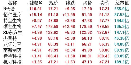 6月10日,两市总体呈现深强沪弱的格局科创板方面,截至收盘,43只个股飘红,66只个股收跌。同时科创板迎来了第六十批新股天合光能。涨幅方面,新股天合光能领涨,较发行价8.16元上涨110.91%。此外,防御板块今日再成市场焦点,医疗器械板块领涨两市。消息方面,近日,国家卫建委等多部门联合发布医药行业工作要点,提出要完善疫苗集中采购政策,推进药品耗材带量采购,加强医药流通管理,加大监管力度。佰仁医疗(90.790, 1.38, 1.54%)涨逾15%,特宝生物(50.880, 1.89, 3.86%)涨逾8%,硕世生物(205.800, 17.55, 9.32%)、东方生物(146.750, 11.26, 8.31%)等医药股跟涨。跌幅方面,凌志软件(45.890, 1.61, 3.64%)、松井股份跌逾7%,德马科技(61.890, 0.76, 1.24%)、燕麦科技跌逾5%,吉贝尔(45.110, 1.19, 2.71%)、华特气体(81.200, -2.06, -2.47%)等跟跌。