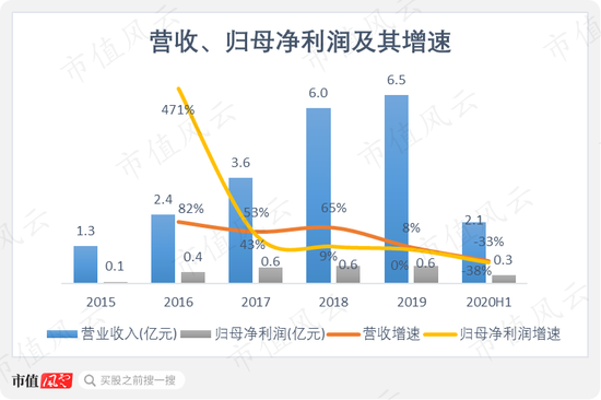 2015-2019年,公司营收由1.3亿元增至6.5亿元,CAGR为50%;同期,归母净利润由0.1亿元增至0.4亿元,CAGR为41%。