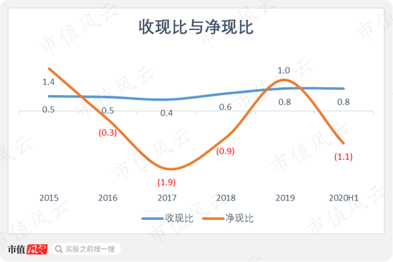 从盈利质量来看,公司的收现比与净现比指标起伏较大。收现比自2015年以来虽有改善,但始终不足1;净现比则基本为负,显示公司盈利质量极差。