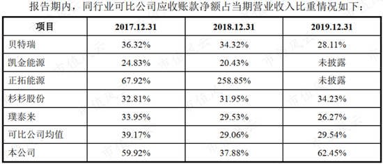 2017-2019年,公司应收账款及应收票据净额分别为3.9亿元、5.7亿元及5.5亿元,占营业收入的比例分别为108%、95%和84%,各期金额较大,占营业收入的比例较高。
