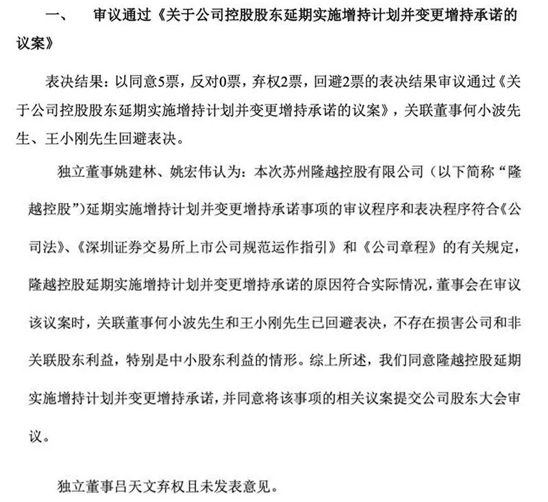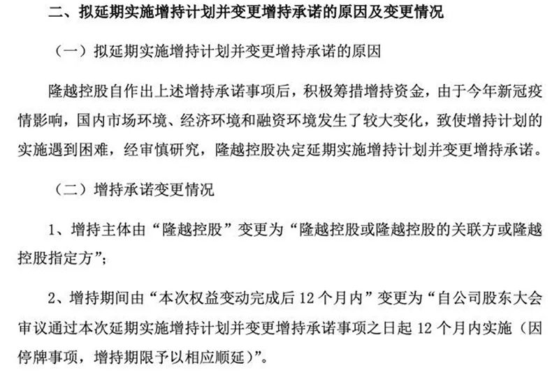 “对上市公司未来发展前景的信心”不变的隆越控股随即变更增持承诺,将增持主体变更为隆越控股或其关联方或其指定方,承诺增持期间延期至今年9月21日止。