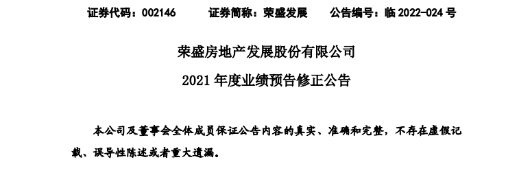 当时,对于业绩预下降,荣盛发展表示,受行业政策持续调控、资产减值及新冠疫情等因素影响,公司在2021年度的开发项目交付面积较上年度有所降低,同时由于2021年度结转的开发项目毛利率下降,从而导致毛利润同比出现较大幅度下降。